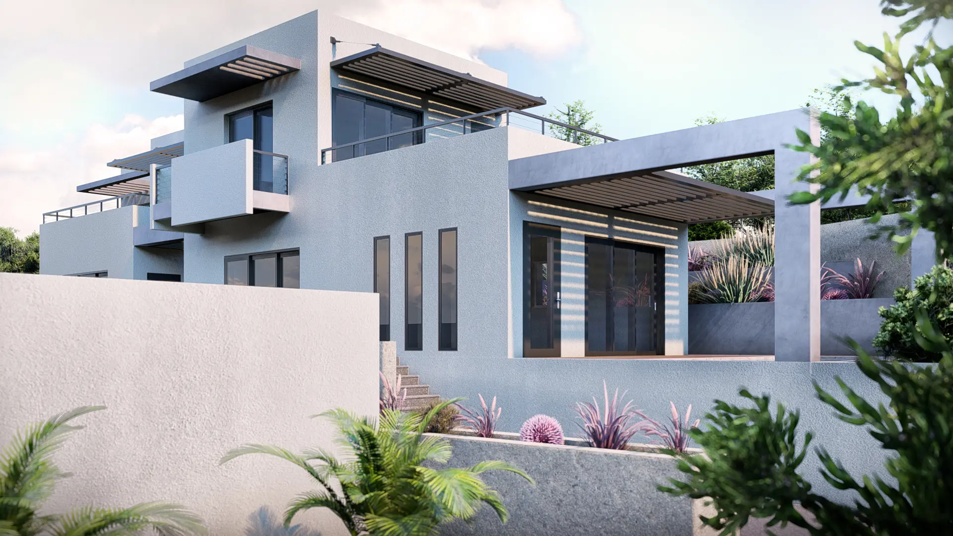 Η πρόταση για μια μικρή ξενοδοχειακή μονάδα στη Νέα Καρβάλη Καβάλας είναι ένα έργο που συνδυάζει τη λειτουργικότητα, την ιδιωτικότητα και την αισθητική σε ένα σύγχρονο αρχιτεκτονικό πλαίσιο. Το συγκρότημα αποτελείται από δύο όγκους, οι οποίοι περικλείουν μια εσωτερική αυλή, δημιουργώντας έναν προστατευμένο και καλαίσθητο χώρο για χαλάρωση. Η αυλή φιλοξενεί μια κοινόχρηστη πισίνα, αποκλειστικά για τους επισκέπτες των διαμερισμάτων των επάνω ορόφων, ενώ τα τέσσερα ισόγεια διαμερίσματα διαθέτουν τις δικές τους ιδιωτικές μικρές πισίνες, προσφέροντας πολυτέλεια και άνεση.